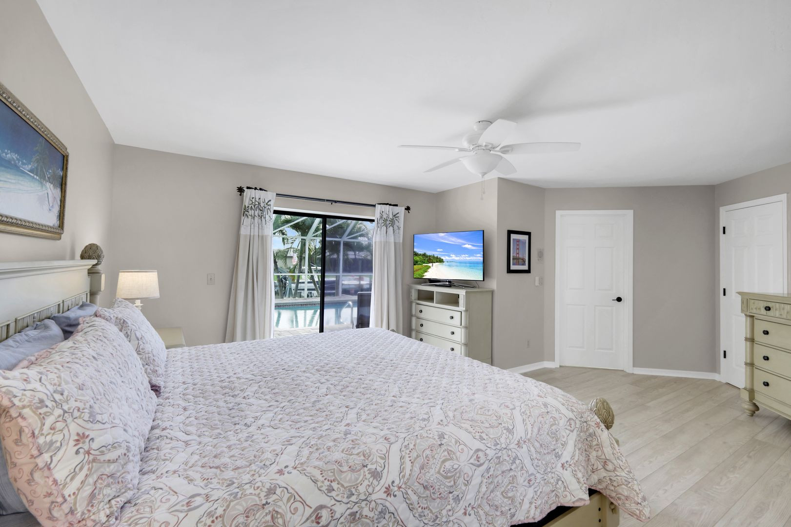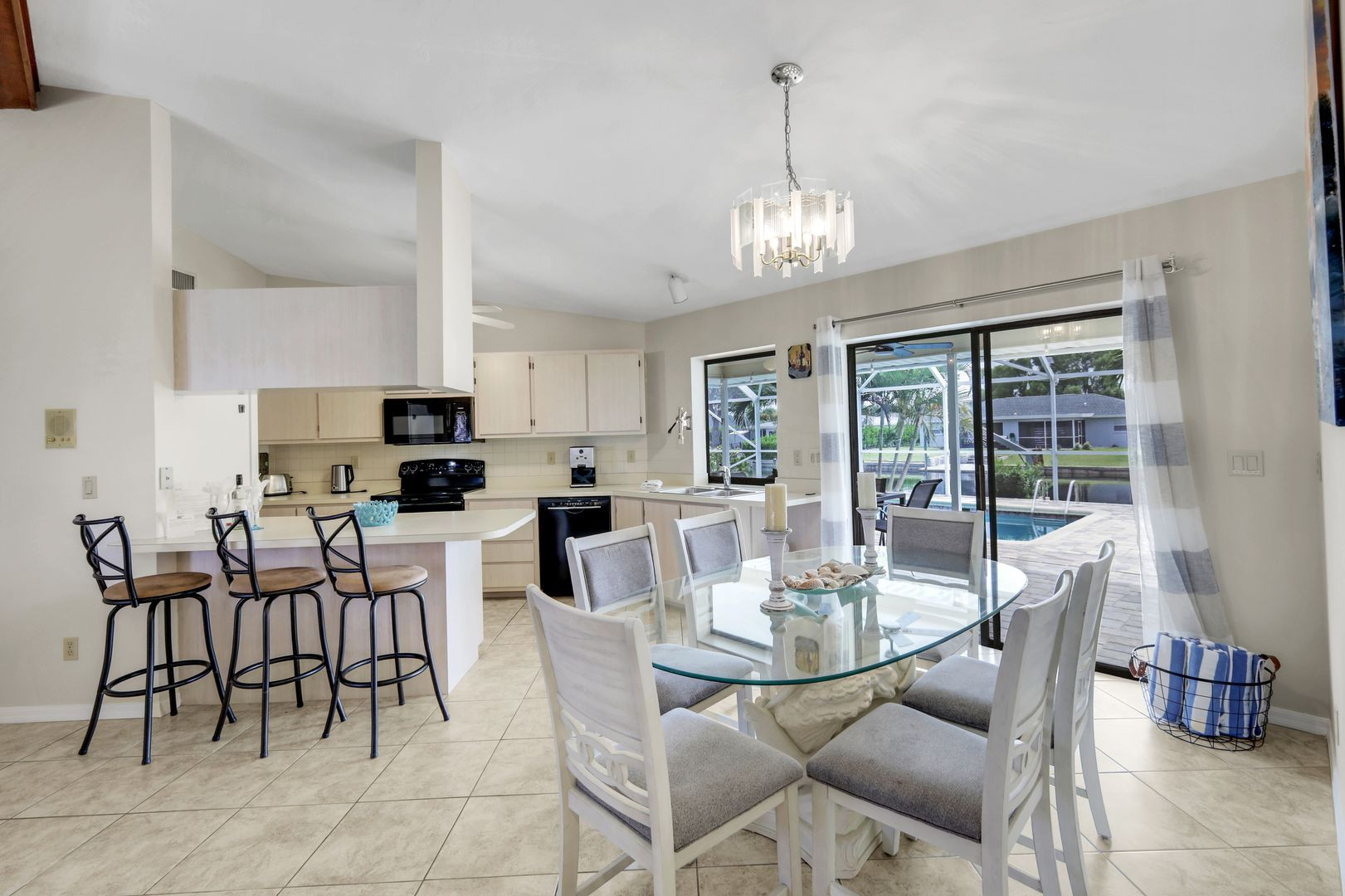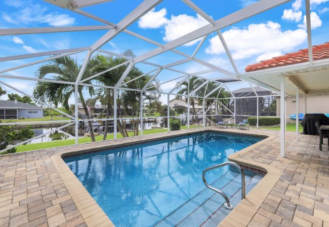 Ein einladendes Haus abseits des Wassers in einer begehrten Lage im Südwesten von Cape Coral, nahe Chiquita Blvd und Cape Coral Pkwy. Der großzügige Grundriss umfasst 3 Schlafzimmer (King-Size-Bett, Queen-Size-Bett, 2 Einzelbetten), 2,5 Badezimmer, ein separates Wohn- und Familienzimmer sowie eine große, voll ausgestattete Küche. Stilvolle Möbel verleihen dem Haus einen zeitgemäßen Touch. Der elektrisch beheizte Pool bietet ganzjährig Badespaß. Die nach Süden ausgerichtete Terrasse bietet einen Blick auf die üppige, tropische Landschaft. Geschäfte und Restaurants sind zu Fuß oder in kurzer Fahrzeit erreichbar.