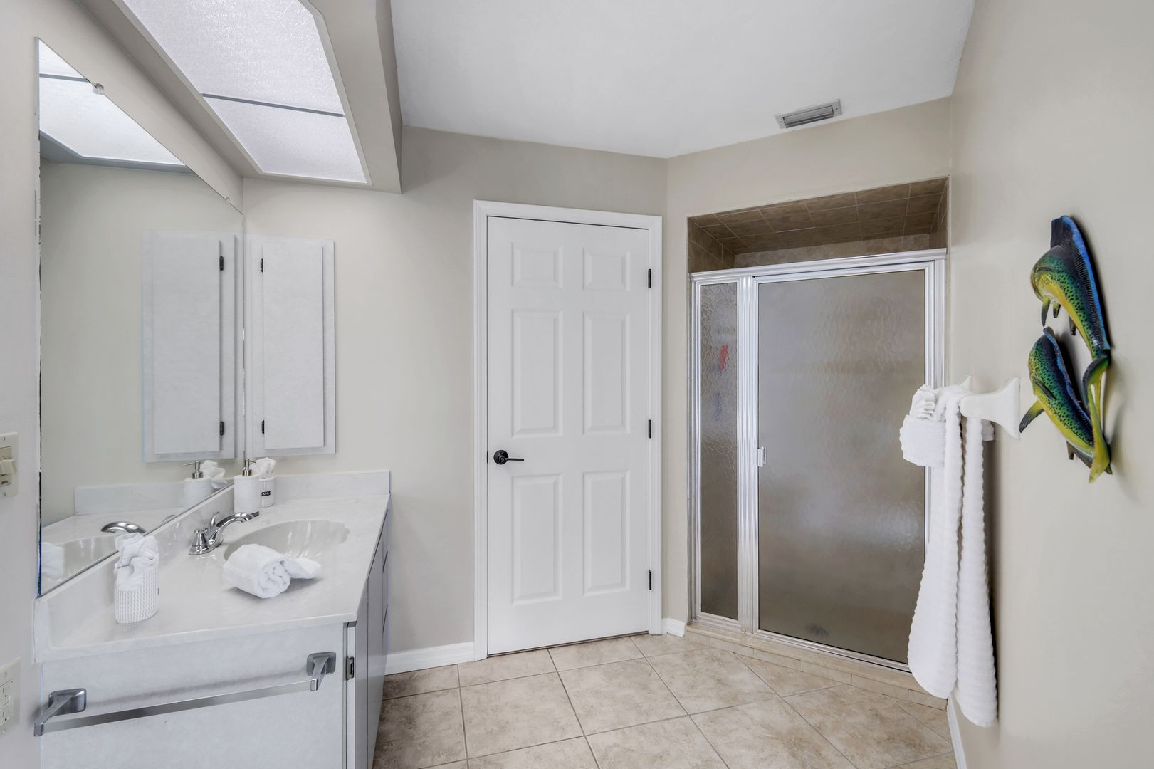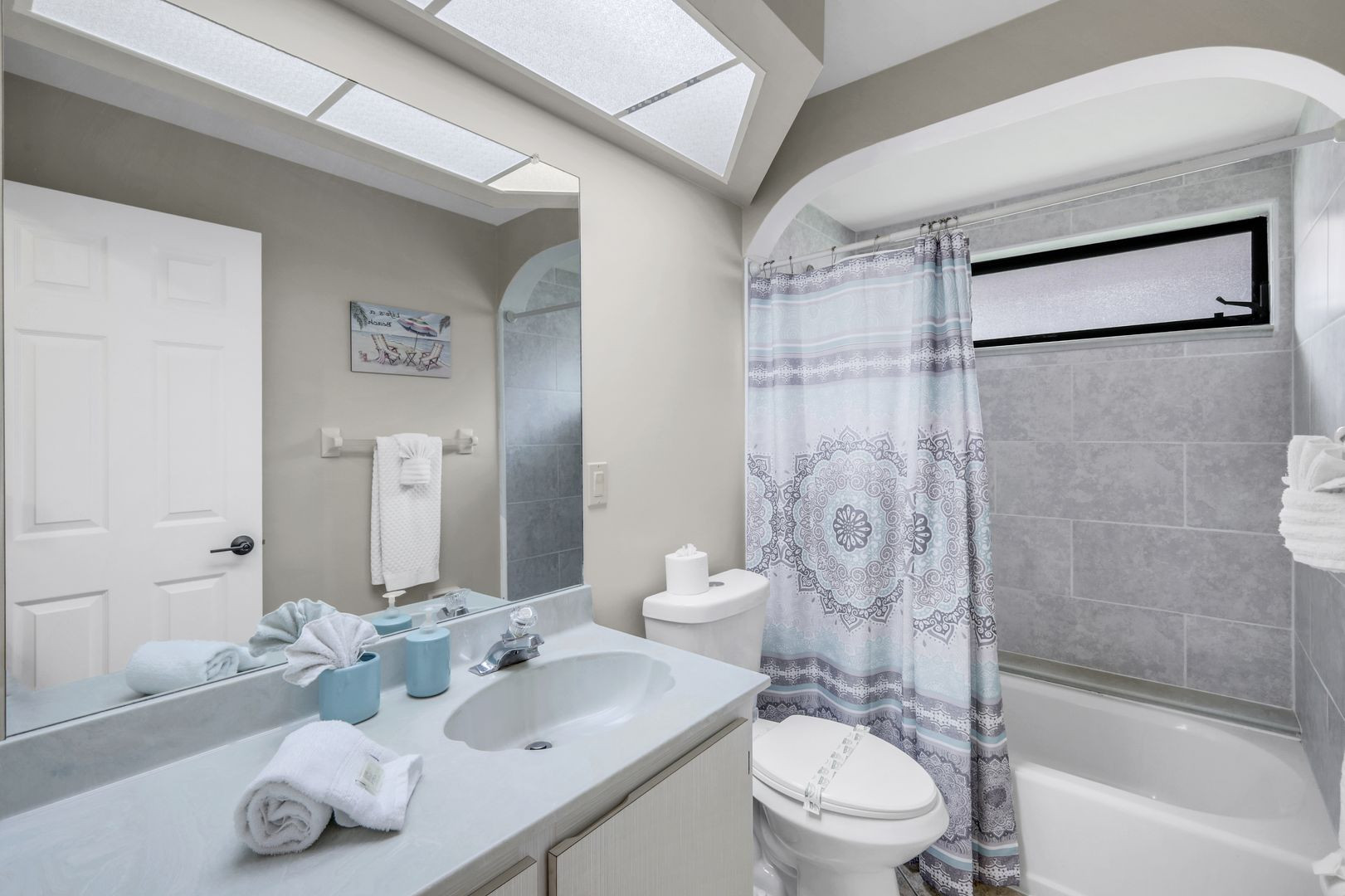 Das Haus verfügt über 3 Schlafzimmer und zwei Badezimmer. Das Master Schlafzimmer verfügt über ein King Size Bett mit eigenem Badezimmer. Das 2. Schlafzimmer mit einem Queen Size Bett und das 3. Schlafzimmer mit 2 Twin Betten ausgestattet, teilen sich das zusätzliche Badezimmer.